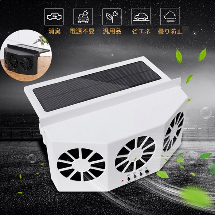 ■商品説明 3連ファンが車内の熱気・ニオイをすばやく換気!! 日本語説明書付き電源不要汎用車載カーソーラーファン 【蒸し暑い夏の車内を快適に】 夏場の煮えたぎるような暑さにエアコンが機能しない… そんな時、これがあれば車内の空気を外に排出できるため、 効率よく車内の温度を下げることができます。