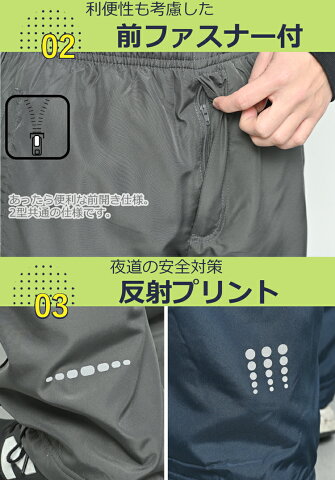 自転車やバイクに乗るときにも風を通しにくいナイロン素材なので冷たい風を防ぐ効果が期待できる防風パンツ。